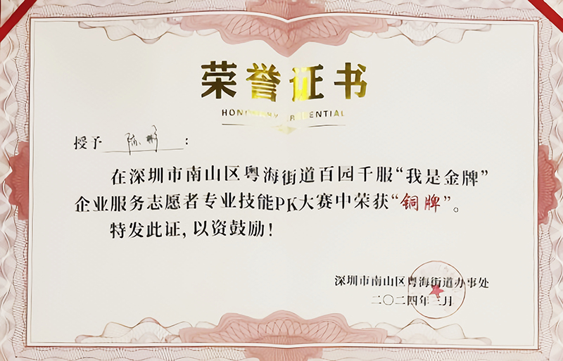 深圳市南山区粤海街道办事处主办的百园千服“我是金牌”企业服务志愿者专业技能PK大赛顺利落幕。国贸科技园公司生态园项目三区青年文明号成员陈彬、华玥在活动中表现出色,分别荣获“铜牌”、“优秀奖”的优异成绩。