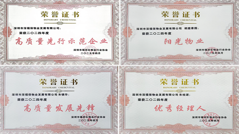 近日,深圳市深福保物业发展有限公司凭借卓越表现揽获深圳市福田区物业行业协会2024年度多项荣誉。