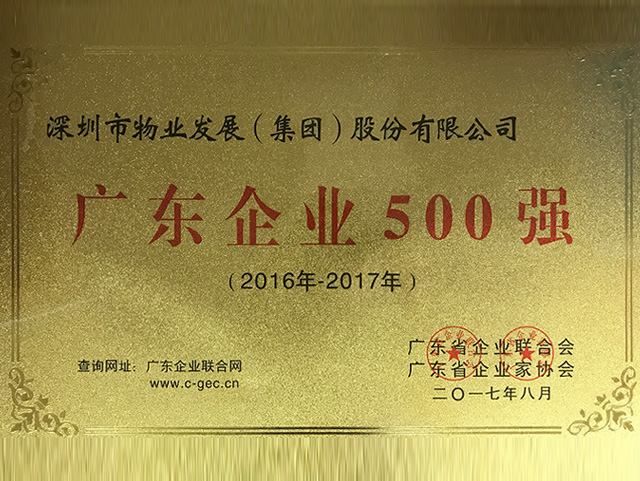 2016-2017深圳物业发展(集团)股份有限公司广东省企业500强