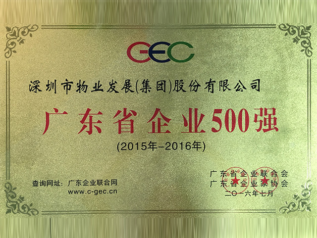2015-2016深圳物业发展(集团)股份有限公司广东省企业500强