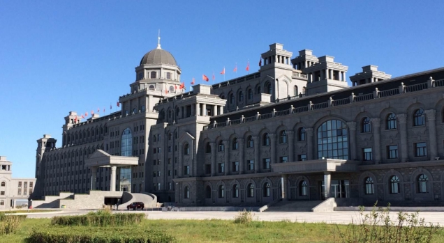 内蒙古满洲里市政府办公大楼是满洲里市的标志性建筑。