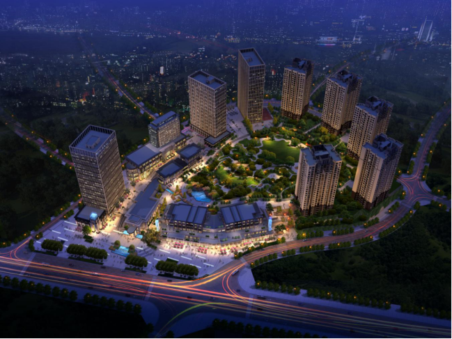 本工项目总建筑面积: 247290.43㎡,其中地上面积为82295.00㎡。本项目设计内容为办公楼,公寓式住宅,LOFT创意办公,商务酒店和文化商业。整个产业园内共有1栋精品融景办公楼,1栋智能商务酒店,2栋活力LOFT创意办公,5栋高端公寓式住宅,7栋多层高品质文化商业,一条3万平米左右的景观休闲式商业步行街, 2处2层集中地下车库。住宅建筑面积90287.08㎡;总户数为1235,容积率为2.50, 绿化率为31.93%。
