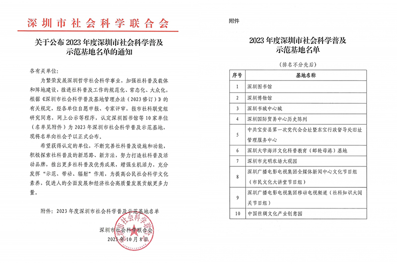 2023-10-09深圳国际贸易中心历史陈列入选2023年度深圳市社会科学普及示范基地10月8日,深圳市社会科学联合会公布2023年度深圳市社会科学普及示范基地名单,深圳国际贸易中心历史陈列(以下简称国贸大厦历史陈列)成功入选。 -