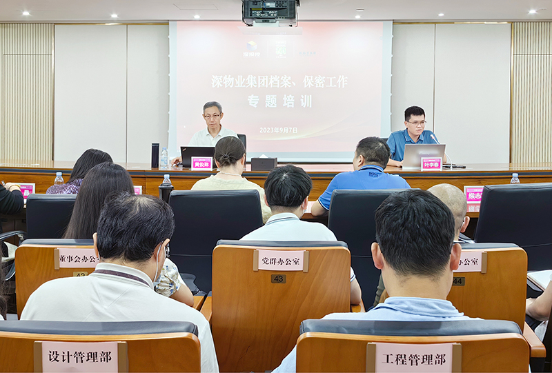 2023-09-12深物业集团举办档案、保密工作专题培训为全面提升公司档案、保密工作管理水平,进一步规范档案与保密工作流程,9月7日,深物业集团举办档案、保密工作专题培训。集团总部及所属各级企业共计200余人通过线上、线下相结合方式参会。