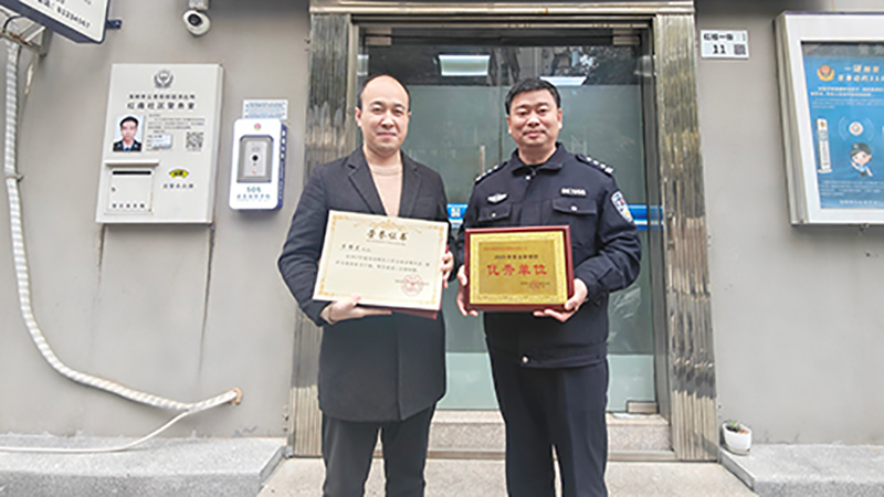 2024-02-06国贸科技园公司政法大厦项目获深圳市公安局桂园派出所“2023年度治安联防优秀单位”称号近日,深圳市公安局桂园派出所向深圳市国贸科技园服务有限公司颁发了“2023年度治安联防优秀单位”奖项,肯定了政法大厦项目治安联防工作表现。项目负责人李耀虎获评“优秀保卫干部”,员工马振、余松波获评“优秀保安员”。 -