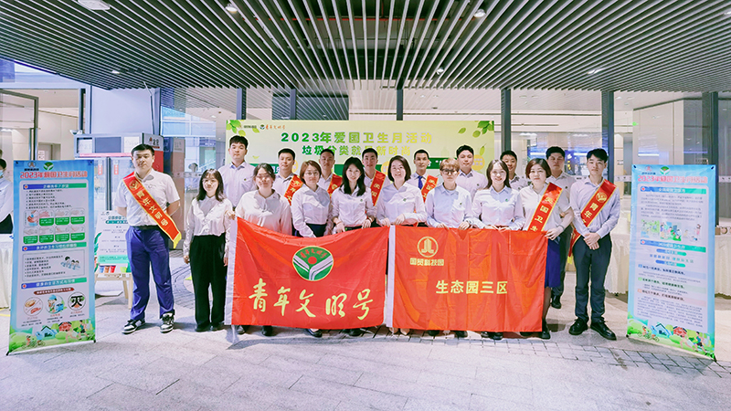 2023-04-26国贸科技园公司生态园三区青年文明号组织开展爱国卫生月活动为积极响应全国第35个爱国卫生月“宜居靓家园,健康新生活”主题,进一步宣传垃圾分类的重要性和必要性,4月19日,国贸科技园产业园分公司生态园三区青年文明号组织开展为期2天的爱国卫生月集中宣传活动。 -