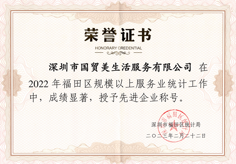 2023-04-03国贸美生活公司荣获“2022年福田区规模以上服务业统计先进企业”称号近日,深圳市福田区统计局发布2022年规模以上服务类企业统计工作表彰结果,国贸美生活公司荣获“2022年福田区规模以上服务业统计先进企业”称号。 -