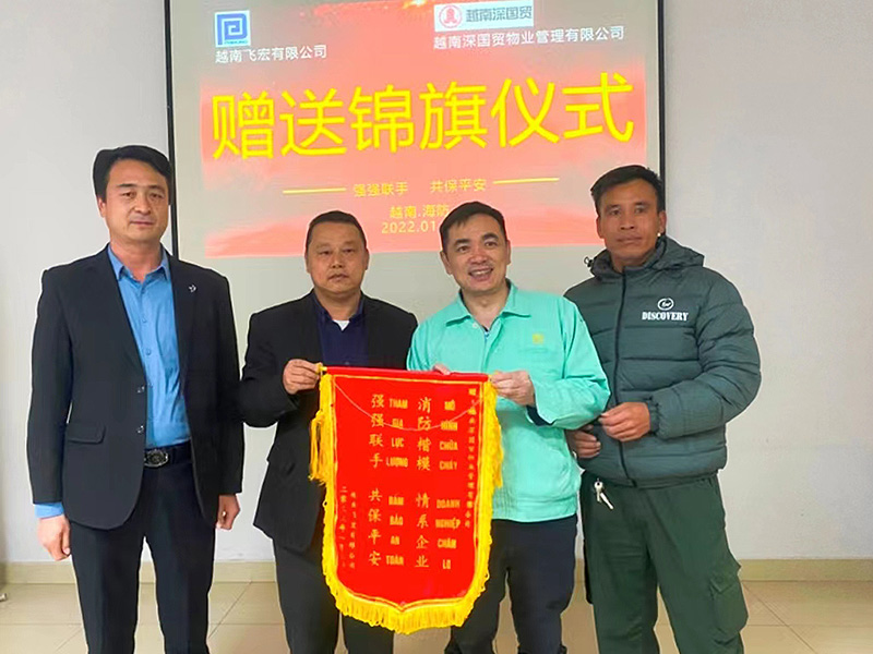 2023-03-01越南深国贸公司消防队消防演习获赞近日,越南深国贸公司消防队受邀前往越南飞宏有限公司开展联合消防演习活动,凭借专业能力和出色表现,被甲方公司赠予“消防楷模,情系企业,强强联手,共保平安”锦旗。 -