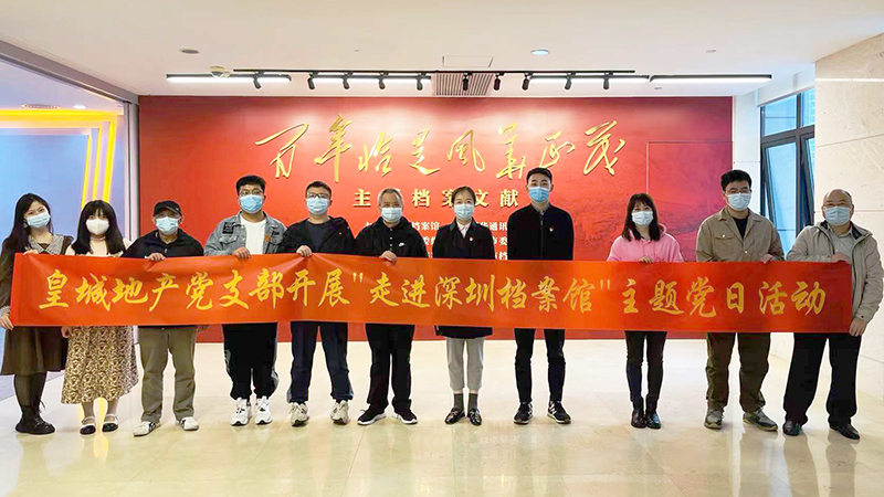 2021-12-28皇城地产公司党支部开展“走进深圳档案馆”主题党日活动为扎实开展党史学习教育工作,12月24日下午,皇城地产党支部组织党员群众到深圳档案中心参观“百年恰是风光正茂”主题档案文献展和先行之路——深圳经济特区档案文献展。 -