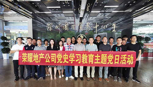 2021-08-04荣耀地产公司党支部组织党员群众参观国贸大厦历史陈列为进一步深化党史学习教育,引导公司党员群众当好“国贸精神”的传承者、传播者、践行者,7月29日下午,荣耀地产公司党支部开展主题党日活动,参观深圳市党史教育基地国贸大厦历史陈列。 -